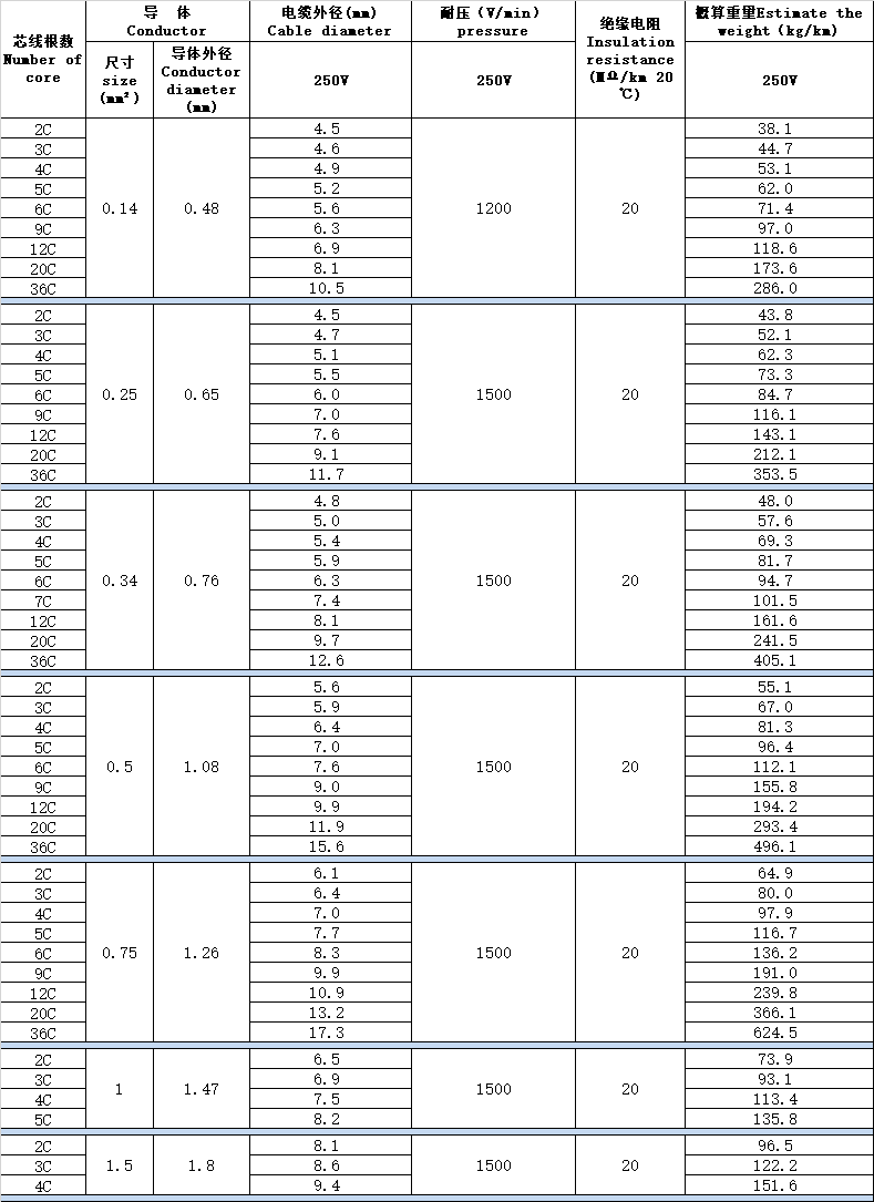 - · 高柔性PVC非屏蔽拖链控制电缆 CLASSIC YY-TP