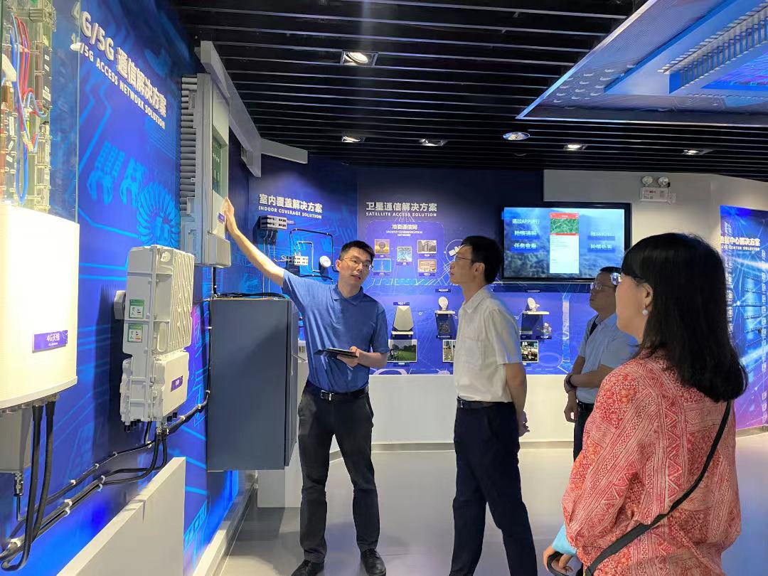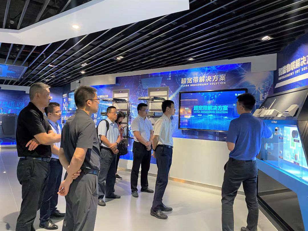 首先,张韶峰常委一行参观了金信诺信号联接技术展厅,投资经理侯锦城就集团发展、企业文化、覆盖领域、解决方案、创新产品以及核心竞争力进行了介绍。双方针对便携式智能卫星终端、车载一维相控阵天线、Wi-Fi 6 Mesh智能路由器等多款智能终端产品和重点项目进行了探讨。