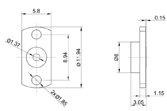 | 电压驻波比 | ≤1.10 | DC~3GHz | 绝缘介质 | 光孔 | PTFE | |