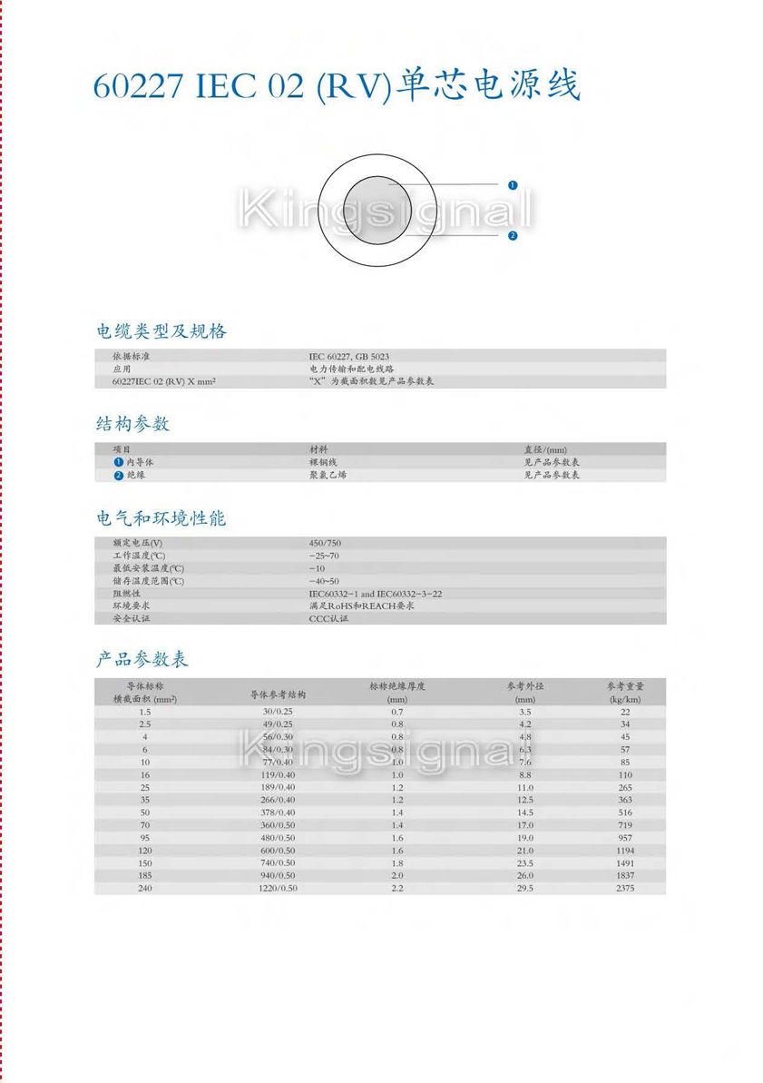 - · 60227 IEC 06(RV) 单芯通信电源线